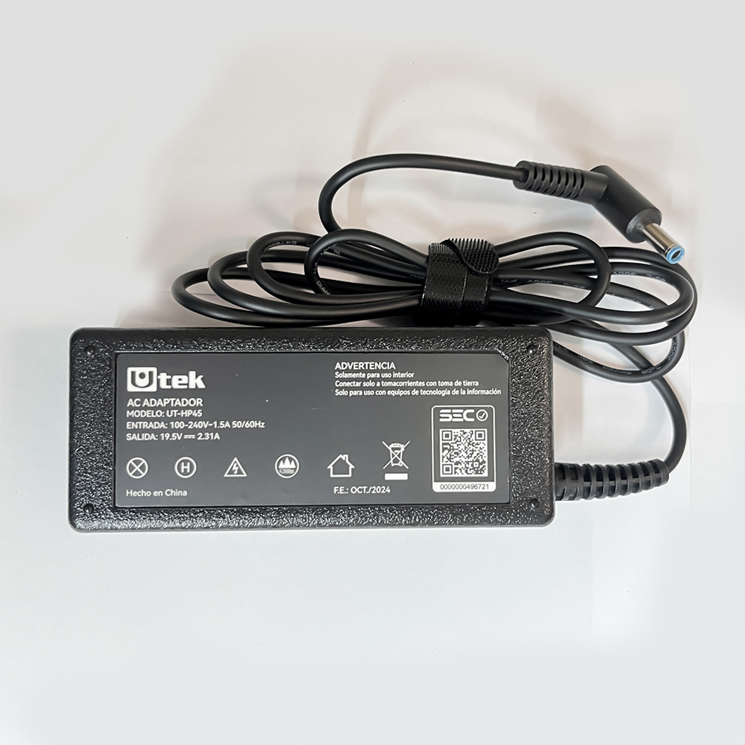 Cargador Notebook Compatible HP 19.5v 2.31A Certificado UT-HP45 Punta Azul