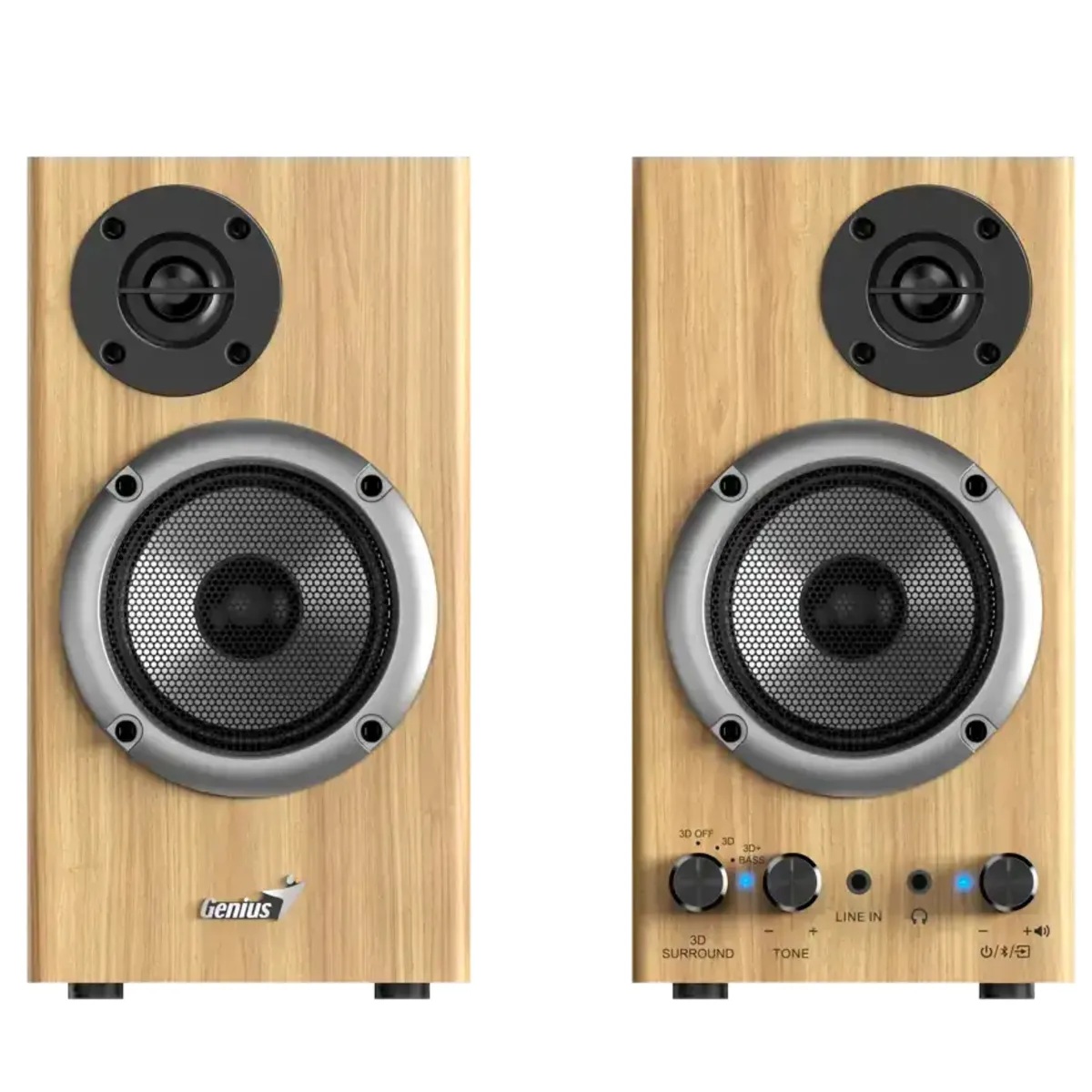 Disfruta de un sonido envolvente con los Genius HF520 Bluetooth, monitores estéreo 2.0 fabricados en madera de alta calidad con un diseño elegante en tono Dark Brown. Ideales para música, películas o trabajo multimedia, ofrecen una experiencia auditiva nítida, potente y con graves reforzados gracias a su tecnología 3D Sound. Su conectividad Bluetooth permite reproducir audio sin cables desde tu smartphone, PC o Smart TV con total comodidad.