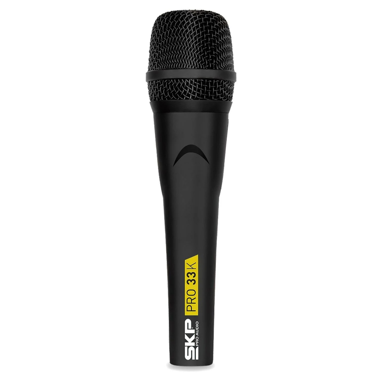 El SKP Pro 33K es un set completo de 3 micrófonos dinámicos cardioides, diseñados para ofrecer un sonido claro y definido en presentaciones en vivo, canto, animaciones, discursos y diversas aplicaciones de voz. Gracias a su patrón polar cardioide, cada micrófono capta de manera precisa la voz principal mientras reduce eficazmente los ruidos laterales y del entorno, asegurando un mejor desempeño en todo tipo de escenarios.